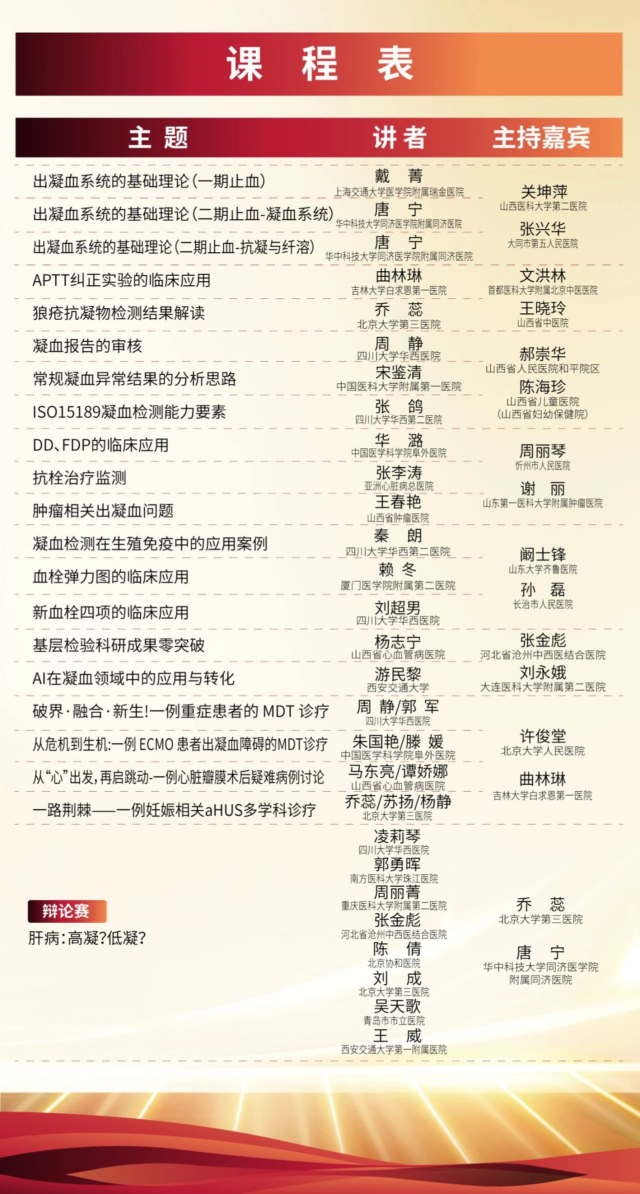 ±¾´ÎÅàѵԼÇ뺣ÄÚÄýѪÁìÓò×ÅÃûר¼ÒÊڿΣ¬¿Î³ÌÄÚÈݺ­¸Ç³öÄýѪϵͳ»ù´¡ÀíÂÛ¡¢¶àѧ¿ÆÍŽáÕïÁÆ£¨MDT£©¾­µä°¸Àý²ð½â£¬±ç˵ÈüÒÔ¼°AIÔÚÄýѪÁìÓòµÄÓ¦Óá£